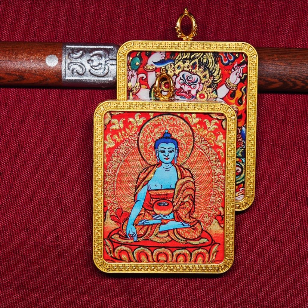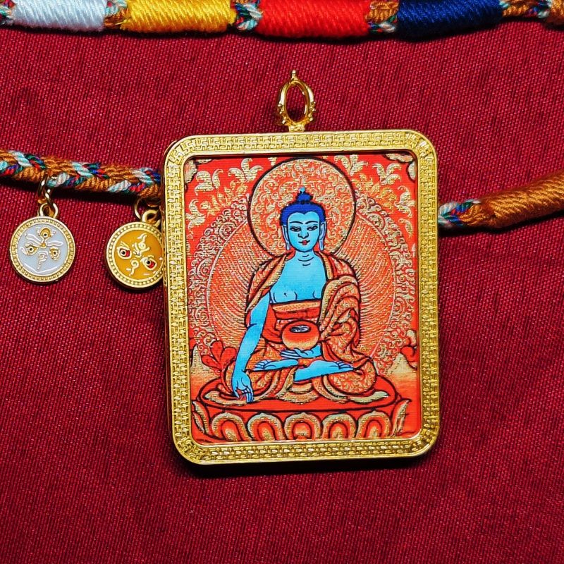 Medicine Buddha Hand-painted Thangka Pendant Necklace