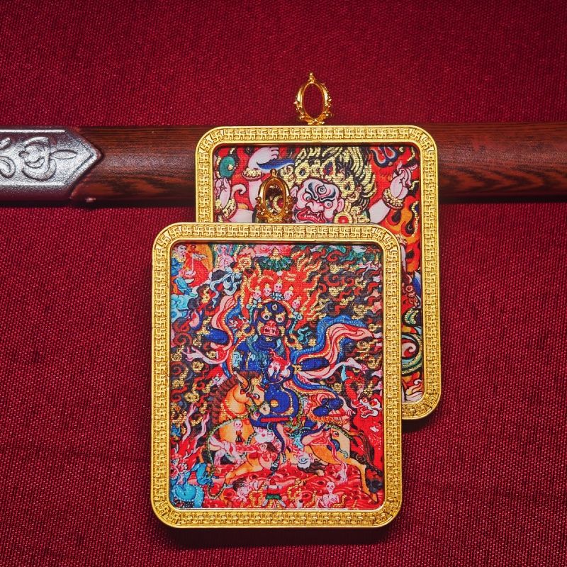 Originating from Indian religion, she’s worshipped by all Tibetan Buddhist sects. Depicted as a wrathful blue figure riding a yellow mule, holding a vajra and skull cup, symbolizing subduing evil. She guards Lhasa and Jokhang Temple, representing supreme protective power and compassion.