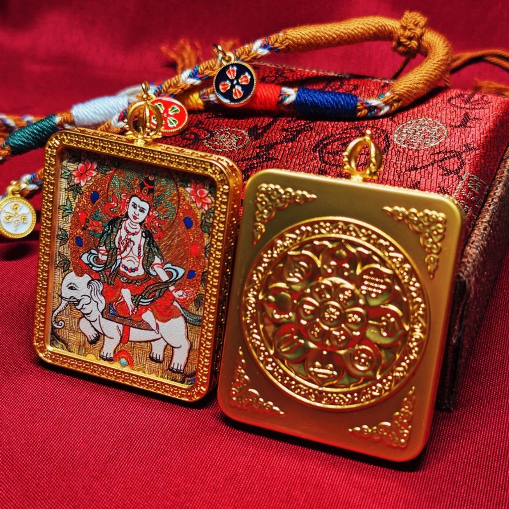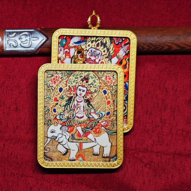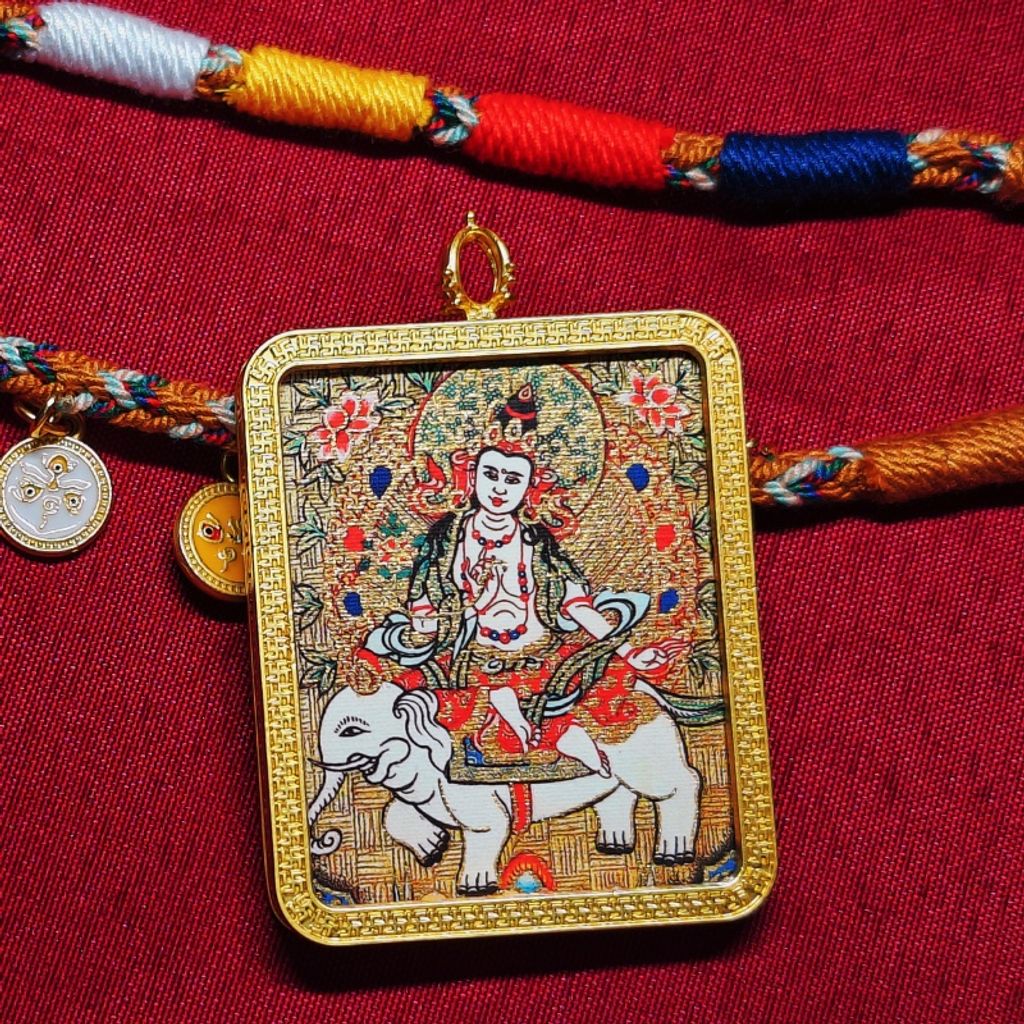 Samantabhadra Bodhisattva Hand-painted Thangka Pendant Necklace